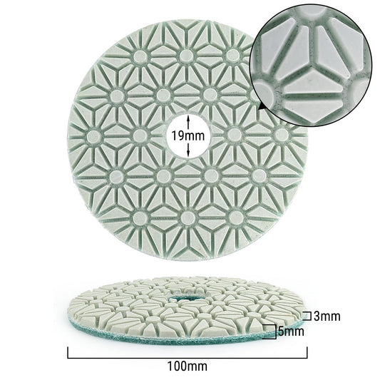NBB Almohadilla de pulido de diamante solo son necesarios 3 pasos para pulido en Húmedo y Seco renovación eliminación en mármol granito cerámica baldosa 100mm/4" con respaldo de nylon