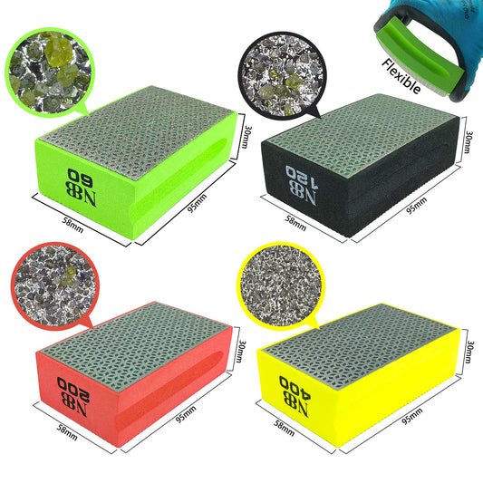 NBB Almohadilla diamantada a Mano para lijar o pulir, Bloque Diamante de Lijado/Pulido con Respaldo de Esponja Flexible para moliendar Piedra Granito cerámica azulejo Vidrio Madera Metal