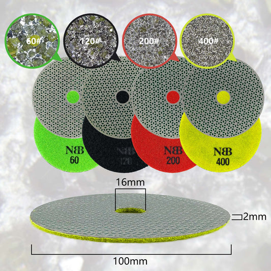 NBB Almohadilla de pulido de diamante electrochapada para pulido en seco en mármol granito piedra natural cerámica madera vidrio metal diámetro 100mm 4" con respaldo de nailon