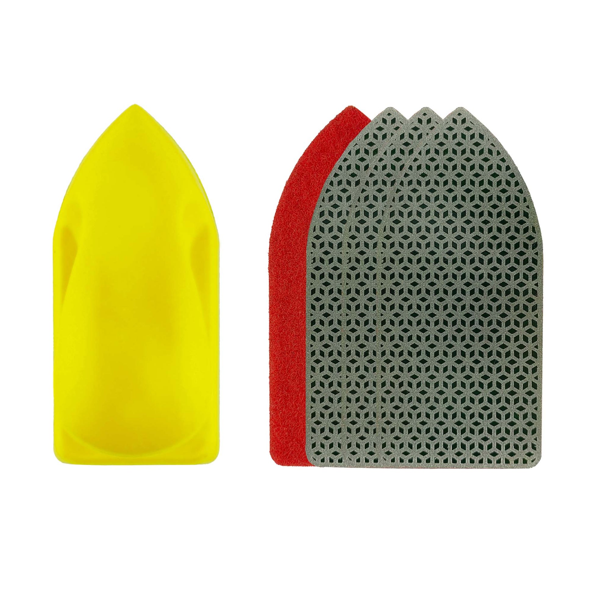 • Sa forme conique permet un ponçage facile même dans les recoins difficiles d'accès. Les disques diamantés remplaçables vous permettent de faire des économies et d'utiliser différents grains pour un ponçage et un polissage optimaux. Le revêtement en mousse souple assure une prise en main confortable. Les rainures latérales améliorent l'adhérence et empêchent tout glissement pendant le ponçage.